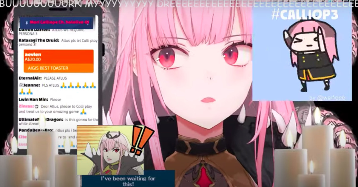 “Atlus, per favore fammi giocare a Persona 3”, ha iniziato Mori Calliope, un VTuber di lingua inglese sotto l’agenzia Hololive di animatori di anime digitali che attualmente sta prendendo d’assalto Internet. Sul suo schermo era visibile una rappresentazione in stile cartone animato di se stessa con due punti esclamativi: un’immagine immediatamente riconoscibile da chiunque abbia giocato al gioco di ruolo giapponese Persona 3.