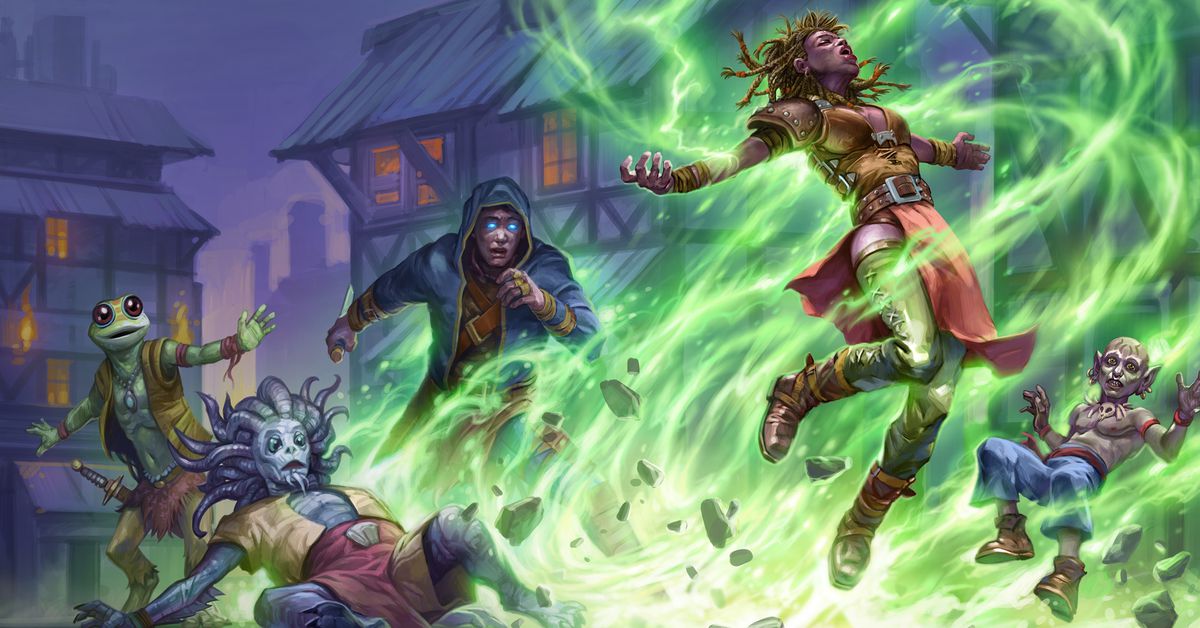 The land of Lawbrand is just one part of a much larger fantasy setting called Auroboros: Coils of the Serpent. It’s a place wildly different from modern D&D settings like the Forgotten Realms, Eberron, or Ravenloft. Instead, it’s a land filled with prosperous city states, powerful magic fueled by mystical tattoos, and a prospering counterculture with a music scene all its own. Metzen told us in an interview that it’s “kind of like Dragonlance meets Black Sabbath’s 1973 U.S. road tour,” and the early art proves that out. Imagine tattooed elves in dusty bell bottoms, dwarves in beat-up cowboy hats, all cruising down the highway toward a medieval Burning Man.