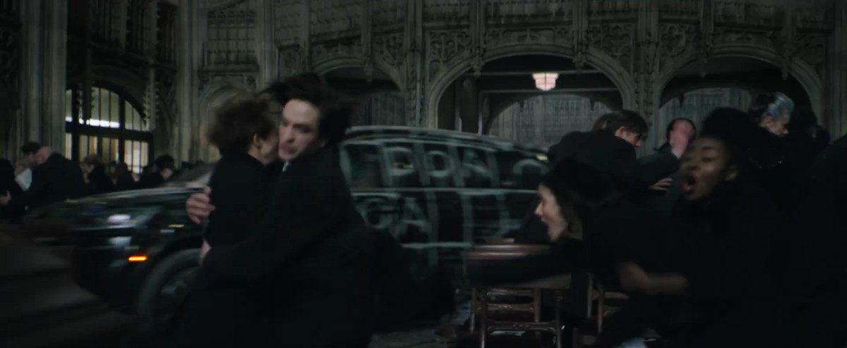 Durante il funerale di Tape Man / Don Mitchell Jr., Bruce salva un bambino dall’essere investito da un’auto che viene trascinata in una folla al chiuso. L’auto sembra avere lettere dipinte / registrate su di essa: “DOA”. L’autista ha una lettera per Batman attaccata al petto, un cellulare attaccato alla mano e sembra essere stato costretto o costretto a guidare l’auto. Sicuramente la voce di Andy Serkis dice “Perché ti scrive?” Matt Reeves sta facendo il pieno di David Fincher in questo.