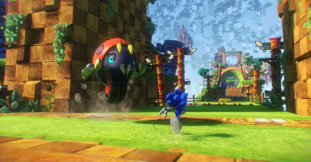 Sonic può saltare e scivolare, correre e scattare, accelerando quando si tiene premuto un grilletto. Correre per il mondo è piacevole e veloce, soprattutto quando lasci che il riccio entri nel pilota automatico su serie consecutive di binari, anelli e paraurti. L’ambiente sfreccia in una sfocatura, mentre tieni d’occhio ciò che ti aspetta per cercare di afferrare il maggior numero di anelli possibile.