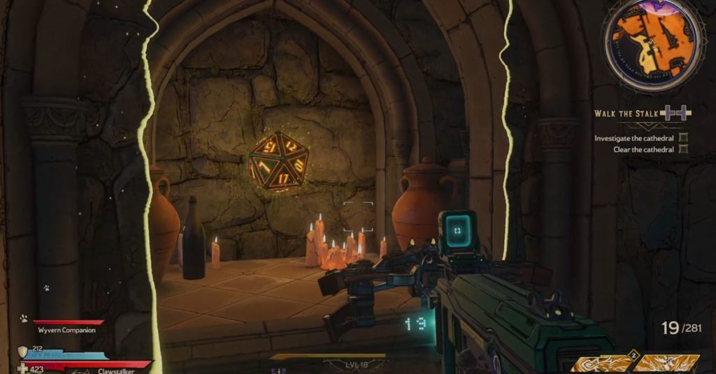 Nel video qui sopra, puoi guardare il mio culo idiota cercare in un’area confinata in fondo a una cattedrale per 55 secondi prima di scoprire il tradimento di Gearbox. Quell’etereo tintinnio che entra in fondo alle scale è il segno rivelatore di un Lucky Die vicino, quindi, naturalmente, perlustro l’intera area.