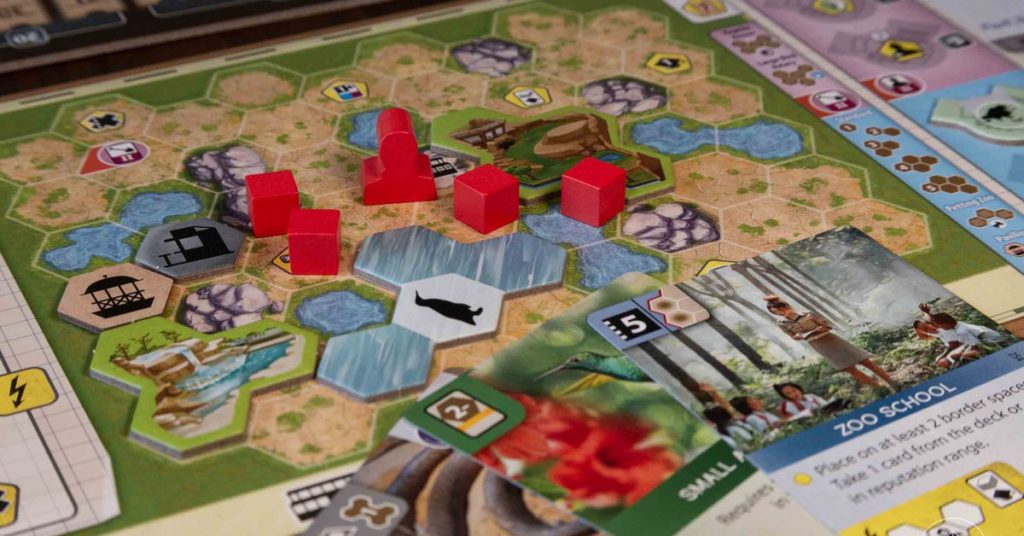 Ogni giocatore ha il proprio tabellone con un’area zoo vuota di spazi esagoni su cui collocherà i recinti che ha acquistato, coprendo da uno a cinque esagoni ciascuno, e in cui potrà quindi posizionare gli animali. Ogni animale ha un requisito di dimensioni minime del recinto e potrebbe richiedere che tu abbia altri elementi nel tuo zoo, ma quasi tutti gli animali danno anche qualche tipo di beneficio quando li giochi anche tu. Puoi guadagnare denaro o altri potenziamenti quando copri determinati esagoni nel tuo zoo (come in Bärenpark) e quando aggiungi lavoratori, zoo partner o tessere università alla tua scheda, otterrai ulteriori vantaggi immediati (come in Great Western Trail ).
