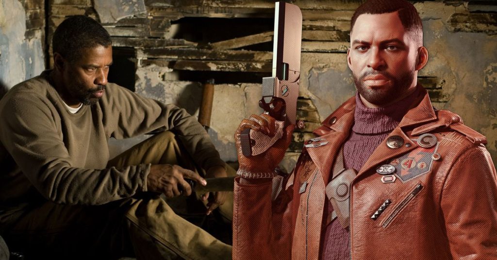 While Mitton and the concept artist behind Deathloop strayed away from post-apocalyptic movies as inspirations for the game, one specific image from the 2010 film The Book of Eli starring Denzel Washington was a notable point of reference in the creation of Colt’s appearance. “I remembered the silhouette of Washington’s character Eli during pre-production, and how much it reminded me of Colt,” said Mitton. “We didn’t know exactly the right shape we wanted for Colt’s jacket, but as soon as I took this photo and showed it to the artists everyone thought, ‘Yes! Wow, this is incredible. It looks just like Colt’s.’ Even though it’s not the same story at all, we wanted to isolate this character who goes on his own journey, this road trip of his. We told the different teams of artists to imagine a world where you have this character Eli stuck on an island and isolated from the world, kind of like in The Thing, but with people who are having an eternal party, like in The Wicker Man, but with a bit of The Purge. We started adding all of these blocks together to make this mood board of what we were looking for, and out of that came Deathloop.”
