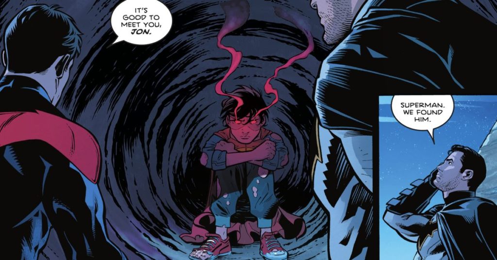 Come mai? Perché si è unito a una squadra di ricerca della Justice League per capire se il figlio perduto di Superman fosse stato rapito da un supercriminale o inghiottito da un vortice temporale o fosse sfondato in una civiltà di talpe sotterranee: una preoccupazione assolutamente ragionevole da avere. Ma si scopre che Jon è uscito volando di notte come gli era stato detto di non farlo, ha viaggiato un po’ troppo lontano, si è perso ed è andato nel panico.