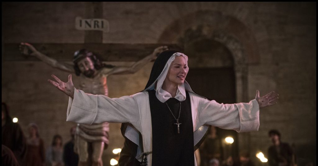 Quando Benedetta inizia a esibire le stimmate e a parlare con la voce di Dio, il suo status nel convento aumenta rapidamente, minacciando l’autorità della badessa (Charlotte Rampling) responsabile del convento, che sospetta anche della relazione di Benedetta e Bartolomea. Man mano che il potere di Benedetta cresce all’interno del convento, alcuni la vedono come una santa, l’unica cosa che tiene lontana la peste dalla loro villa. Altri sospettano che le sue visioni siano bugie. Nessuno sa davvero della loro natura sessuale, ma il convento è un luogo politico: Benedetta desiderare il potere è già abbastanza peccaminoso, e se non dice la verità, potrebbe essere colpevole di altro.