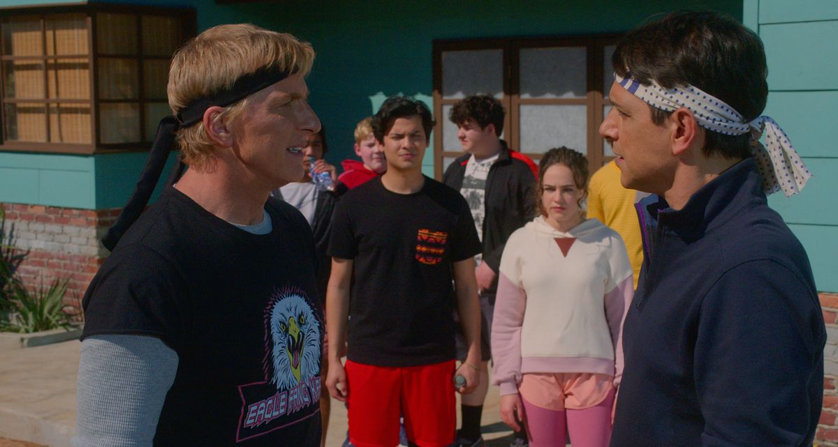 Da lì, la storia versa gas su una fiamma libera. Kreese finge di pentirsi e convince Johnny a lasciarlo insegnare insieme a lui. Gli studenti di Cobra Kai abbandonano il dojo per Miyagi-Do. Gli studenti Miyagi-Do saltano la nave per Cobra Kai. Gli amici diventano rivali, i rivali diventano amici, il tutto mentre praticamente ogni possibile permutazione romantica che lo spettacolo potrebbe potenzialmente esplorare viene esplorata. Lo spettacolo diventa meno una ricostruzione nostalgica del vecchio terreno e più simile a un anime shonen. Il fatto che questi studenti siano scolari passa in secondo piano rispetto al loro amore per il karate e alle rivalità divorante che ha creato nelle loro vite. La seconda stagione si conclude con una rissa di karate nel campus così grande che lascia Miguel in coma. La terza stagione si conclude con un altro che si svolge all’interno della casa dei LaRusso (in una delle migliori consegne di linea della serie, Courtney Henggeler indica con angoscia le macerie della sua casa e dice “un ragazzino è stato lanciato dalla nostra finestra!”). Ogni stagione porta i nostri personaggi sempre più lontano dal mondo in cui abitavano nei film originali e più in profondità nella sua logica progressione: una città dove i combattimenti possono risolvere qualsiasi problema e la vita quotidiana è costantemente deragliata da improvvisi attacchi di karate giovanile. Il pacifismo del signor Miyagi sembra abbastanza giustificato in retrospettiva.
