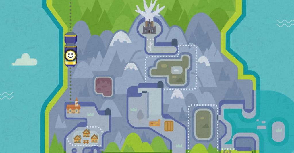 Un treno ti porterà a sud verso la Crown Tundra. Dal chiosco nella stazione di quella zona, puoi anche raggiungere altre fermate dei treni.