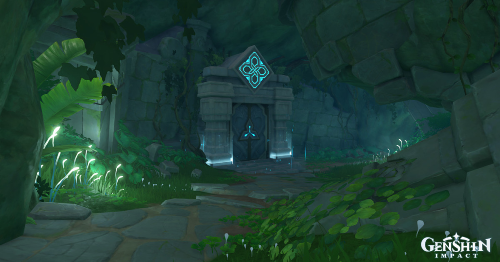 Interagisci con il sano Dendrograna e colpisci il bersaglio sopra il pilastro Dendro con un attacco carico per sbloccare l’ingresso del dominio.