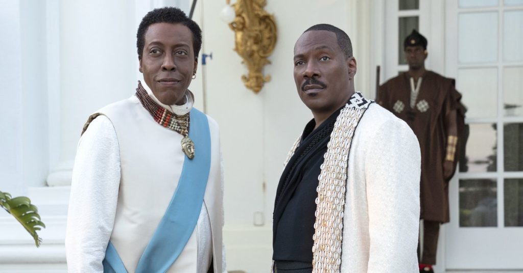 La migliore aggiunta al cast è un gioco di Wesley Snipes nei panni del generale Izzi, l’eccentricamente spietato leader del paese Nextdoria. A differenza di Zamunda, un regno opulento non toccato dal colonialismo, Nextdoria mostra i segni di una nazione chiaramente colpita dalla guerra civile e dai conflitti. Prendi il generale Izzi che licenzia un gruppo di bambini in età scolare: un bambino si chiama C4 e gli altri giocano con le granate. La giustapposizione tra i due stati rende facili le risatine, ma è del tutto troppo superficiale. Il tema delle differenze culturali e di ricchezza tra le nazioni africane potrebbe sembrare troppo pesante per una commedia. Ma considerando quanto integrale il sogno di una regalità africana governata da tradizioni esotiche abbia colorato il film precedente, e il modo in cui Brewer e compagnia aprono la porta a tale esame nel sequel, non cogliere quell’apertura sembra un’opportunità persa per collegare una persona spensierata. storia con radici storiche tangibili.
