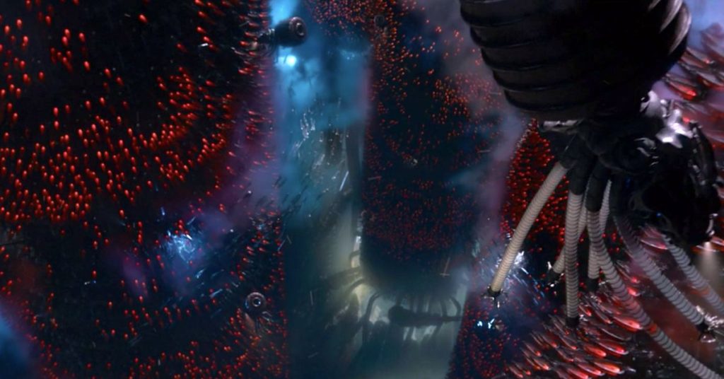 Per quanto riguarda quello che è successo a Neo e Trinity, è un po’ più complicato. Dopo la sconfitta dell’agente Smith da parte di Neo, i suoi corpi e quelli di Trinity furono recuperati e portati a Machine City per essere studiati. L’analista, che era uno dei programmi presenti durante il sacrificio di Neo, ha iniziato a ricostruire meticolosamente i loro corpi nel corso degli anni per comprendere il mistero al centro del “codice sorgente” di One. Sebbene la natura e l’origine dei poteri di Neo continuassero a sfuggirgli, l’analista ha scoperto qualcos’altro dopo aver rianimato i due. Ogni volta che si trovavano nelle immediate vicinanze, Neo e Trinity generavano una quantità spettacolare di energia. Per contenere e sfruttare questa energia al servizio di Matrix, l’Analista costruì una centrale elettrica separata dalle piante che contenevano il resto dell’umanità e imprigionò Neo e Trinity in baccelli uno di fronte all’altro.
