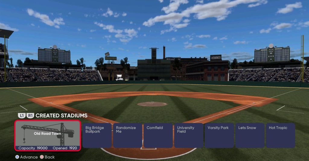 Inoltre, gli utenti possono scambiare campi da baseball dentro e fuori per tutte e 30 le squadre MLB e anche per i loro due affiliati di lega minore (che giocano tutti in parchi fittizi di Bush League nel gioco). Ciò significa che, oltre agli stadi creati, i classici ballyard come lo Shibe Park di Filadelfia o il Polo Grounds di Manhattan possono essere la destinazione della tua superstar virtuale quando raggiungi i grandi campionati. Gli stadi personalizzati sono disponibili solo nelle versioni del gioco per PlayStation 5 e Xbox Series X.