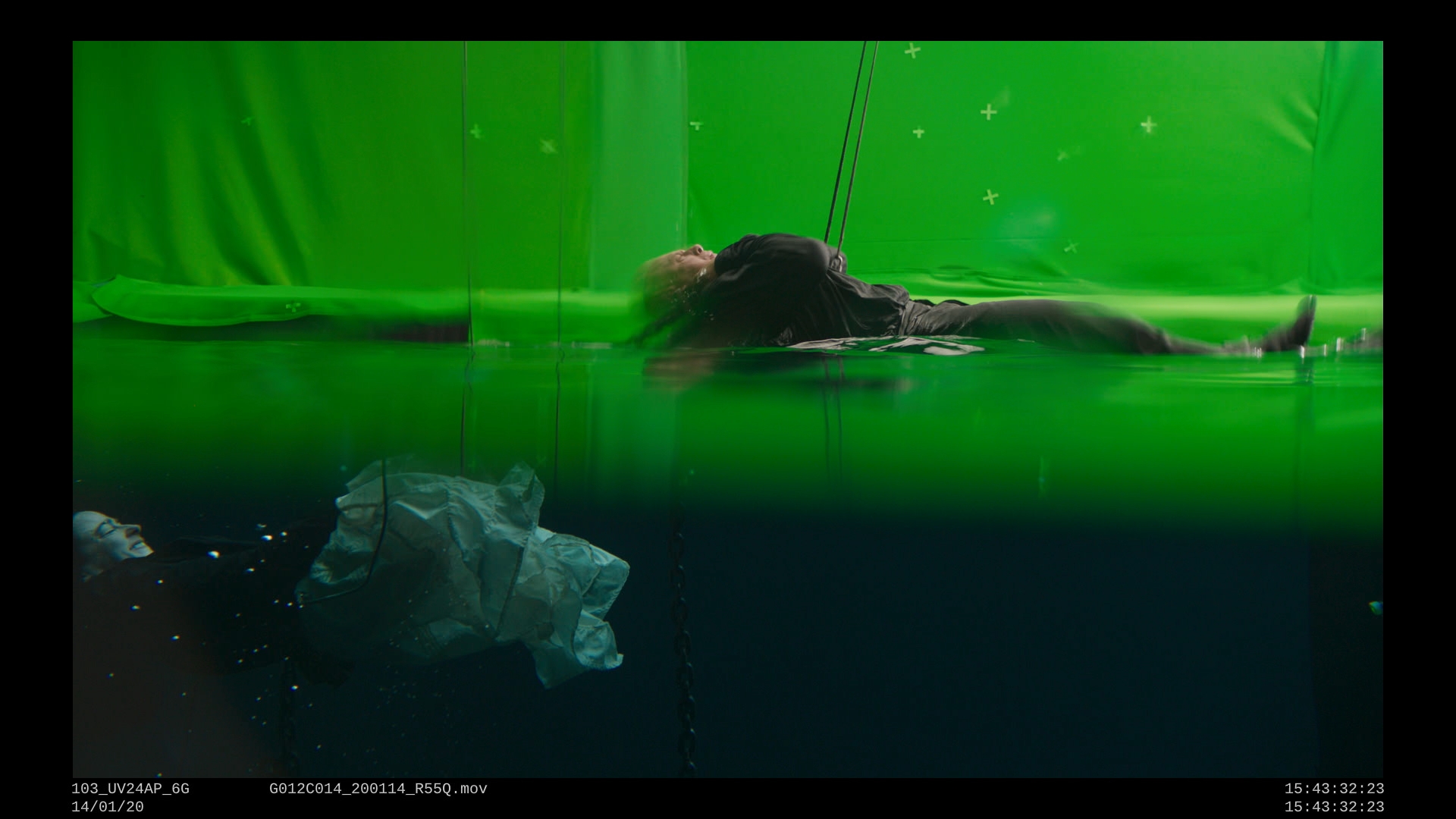 Per alcuni degli scatti guardando in alto dal punto di vista di Amalia, è stato utilizzato uno schermo bianco invece di uno schermo verde, per catturare la sensazione di un cielo coperto. “Con il modo in cui l’acqua distorce e rifrange l’immagine dietro di essa, puoi farla franca”, dice Han. “Se lo rendessimo verde, sarebbe molto difficile estrarre il verde. Piccole cose come questo aiuto – qualsiasi omaggio che riceviamo sul set, nella telecamera, e non dobbiamo farlo più tardi in post, coglieremo ogni opportunità … Quindi avevamo un sistema in cui potevamo scambiarlo tra bianco e verde, più o meno come un sipario, come un sipario che tiriamo avanti e indietro “.