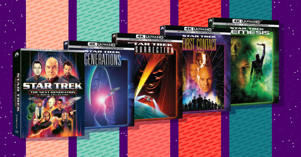 La raccolta di film in Blu-ray Star Trek: The Next Generation 4K uscirà giusto in tempo per il Giorno del primo contatto. La raccolta comprende quattro film con protagonista l’insostituibile cast di The Next Generation (Generations, Insurrection, First Contact e Nemesis). Se ne desideri solo uno o due, puoi in alternativa acquistare i Blu-ray singolarmente tramite i link sottostanti.