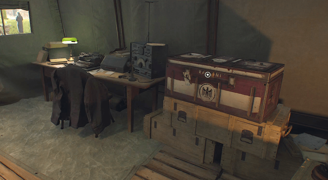 All’estremitĂ  della tenda troverai una cassa accanto a una scrivania. Il baule, perĂ², è chiuso con una combinazione di quattro cifre.