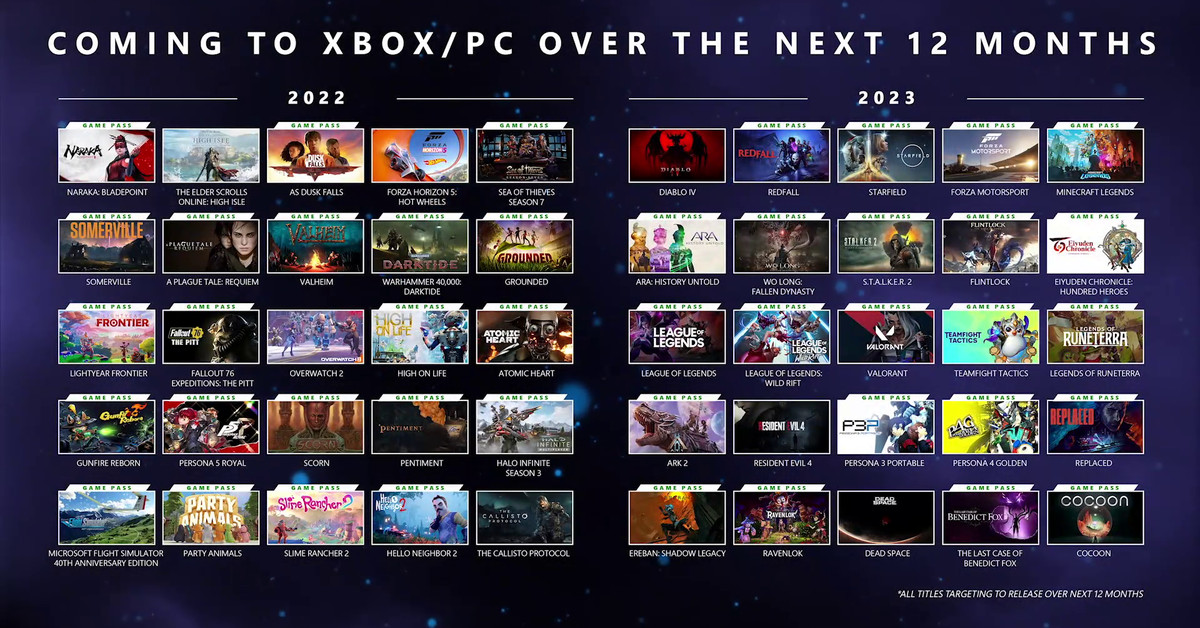 Una scaletta dei giochi in arrivo su Game Pass nei prossimi 12 mesi è stata condivisa domenica all’Xbox & Bethesda Showcase. L’elenco è ricco di fantastici titoli, tra cui un mix di classici, oltre a giochi che devono ancora essere rilasciati: da League of Legends a Persona 5 Royal. Ecco cosa aspettarsi dal servizio di abbonamento ai videogiochi durante il prossimo anno.