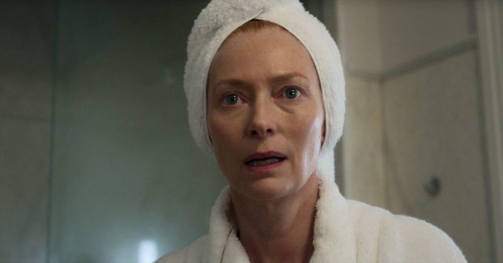 La studiosa Tilda Swinton incontra il djinn liberato Idris Elba – o almeno le sue gigantesche dita luminose in CG