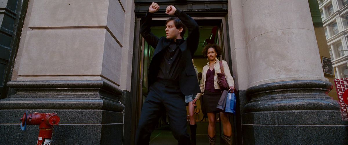 The deep charm of Spider-Man is that he is self-made, scrappy, and just trying his damn best. Spider-Man (2002) exemplifies this more than any installment of a spider-franchise. Played by Tobey Maguire, this version of Peter Parker has a distinct dorkiness that his counterparts don’t quite capture — this is a kid who realistically has a hard time getting the girl he likes to notice him and becomes the butt of jokes by school bullies. He does the right thing not because he reaps anything from it, but because he should, as he learns after Uncle Ben’s tragic death.