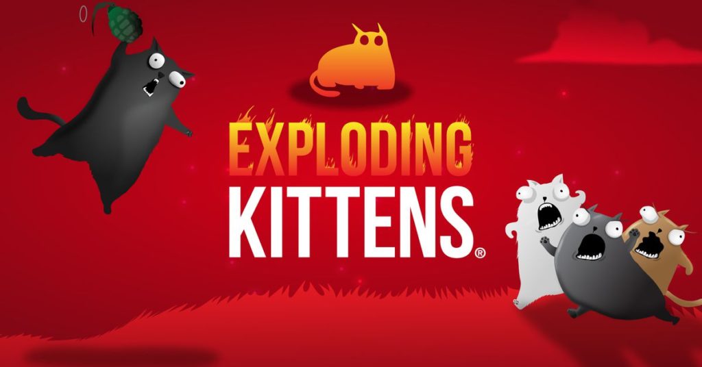 Exploding Kittens, creato da Matthew Inman ed Evan Lee, è costruito attorno a carte ridicole e teatrali come il Tacocat, che proclama “Sono un palindromo!” o il maiale-unicorno che offre spunti sul futuro. Il gioco si è dimostrato abbastanza popolare da giustificare diversi pacchetti di espansione che portano il gioco fino a un massimo di nove giocatori. Questi includono Streaking Kittens, Party Pack e Betrayal Pack, oltre a un port su Nintendo Switch.