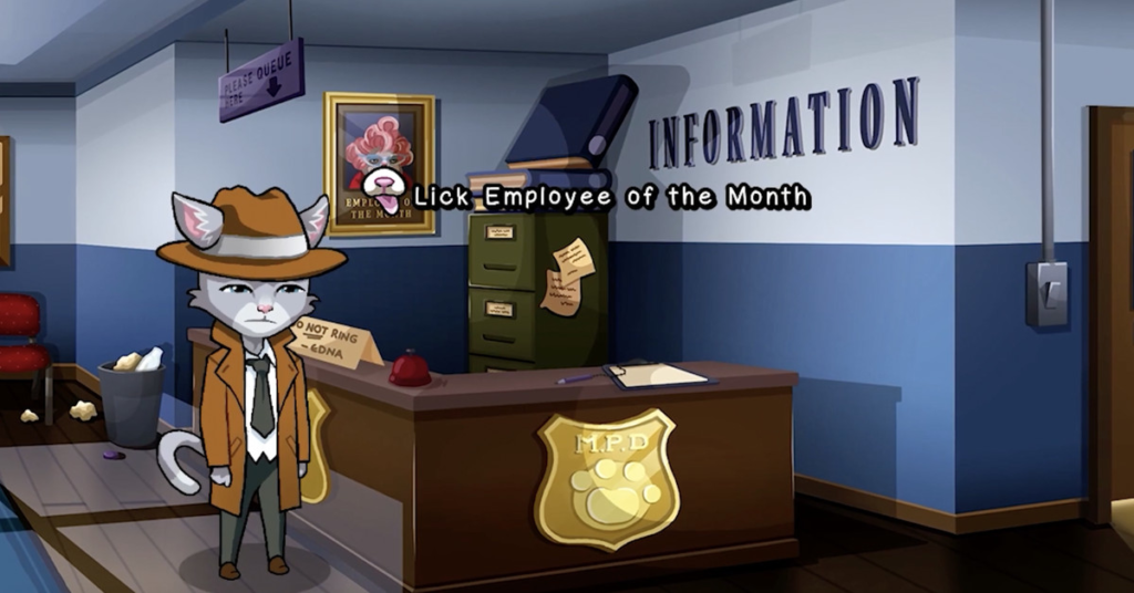 Un nuovo trailer — cronometrato giusto in tempo per la Giornata Internazionale del Gatto — mostra la meccanica di leccata del gioco. Il personaggio principale, il duro detective Cuddles Nutterbutter, va in giro a leccare vari oggetti e altri gatti. Come spiega un personaggio, è proprio così che i gatti ricevono informazioni! È solo un po’ strano che questi gatti abbiano voci molto umane e ridacchino mentre vengono leccati.
