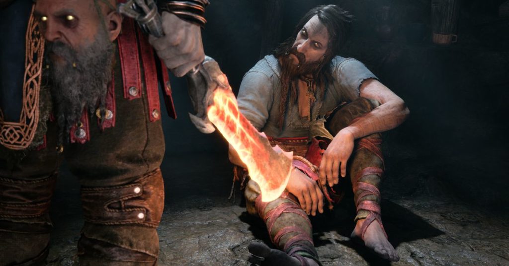 Questo screenshot di Atreus, Brok, Mimir, Tyr e Kratos è stato catturato nella modalità HFR di God of War Ragnarök su PS5. Immagine: SIE Santa Monica Studio/Sony Interactive Entertainment tramite Viaggio247