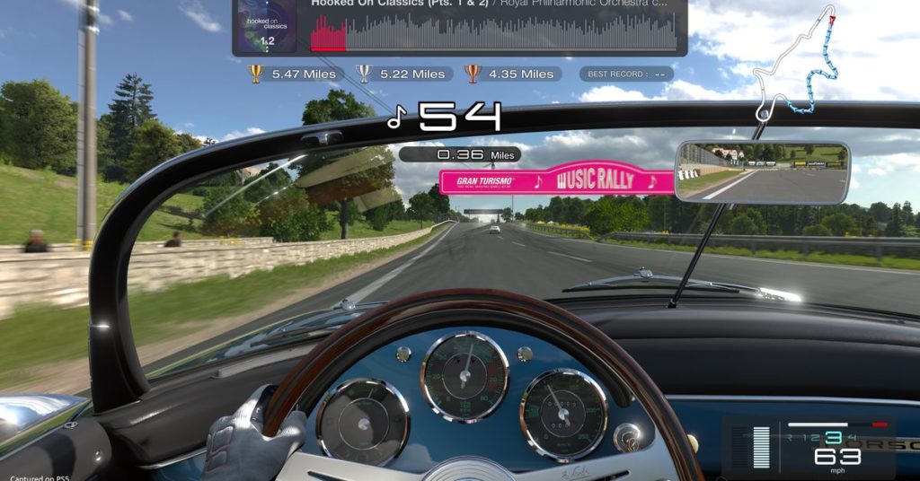 E poi c’è una modalità di guida casual chiamata Music Rally, che vuole essere una vetrina per una colonna sonora composta da più di 300 brani di 75 artisti diversi. Music Rally è essenzialmente una modalità time-attack, sebbene l’obiettivo non sia quello di guidare il più velocemente possibile. Ai giocatori viene assegnato un certo numero di “battiti” da completare in un segmento del percorso, che vengono reintegrati passando attraverso i segnalini di percorso. L’obiettivo è raggiungere la fine della canzone. Yamauchi ha affermato che Music Rally ha lo scopo di evidenziare la colonna sonora di Gran Turismo 7 senza silenziare il resto dell’audio del gioco, poiché nei giochi precedenti i giocatori dovevano scegliere l’uno o l’altro per le loro unità.