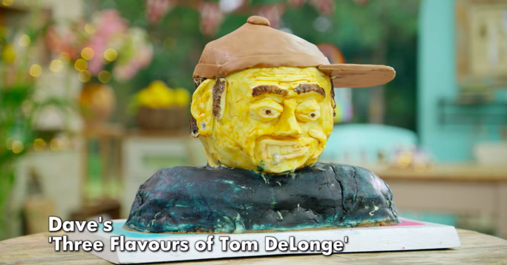 La sfida spettacolare dello spettacolo richiedeva che i fornai creassero un busto di uno dei loro eroi dalla torta. I dolci a base di costruzioni sono sempre stressanti da guardare, ma questa particolare sfida era pura commedia “hai provato”. Prendendo spunto da Nailed It! Di Netflix, quasi tutti gli eroi della torta erano un pasticcio sciolto e sanguinante, ma sono stati i tre gusti di Tom DeLonge a raggiungere lo status di successo virale su Twitter. Mi spiace per i fornai; Il pan di spagna per torta non ha qualità scultoree di argilla o marmo, quindi tutti meritano una A per lo sforzo. Anche il reparto grafico del Great British Baking Show merita un elogio per i deliziosi scatti interni della testa di DeLonge. Se c’è un modo per iniziare una stagione, è con la carne fondente di una leggenda del pop punk (che nessuno nello show sembra conoscere).