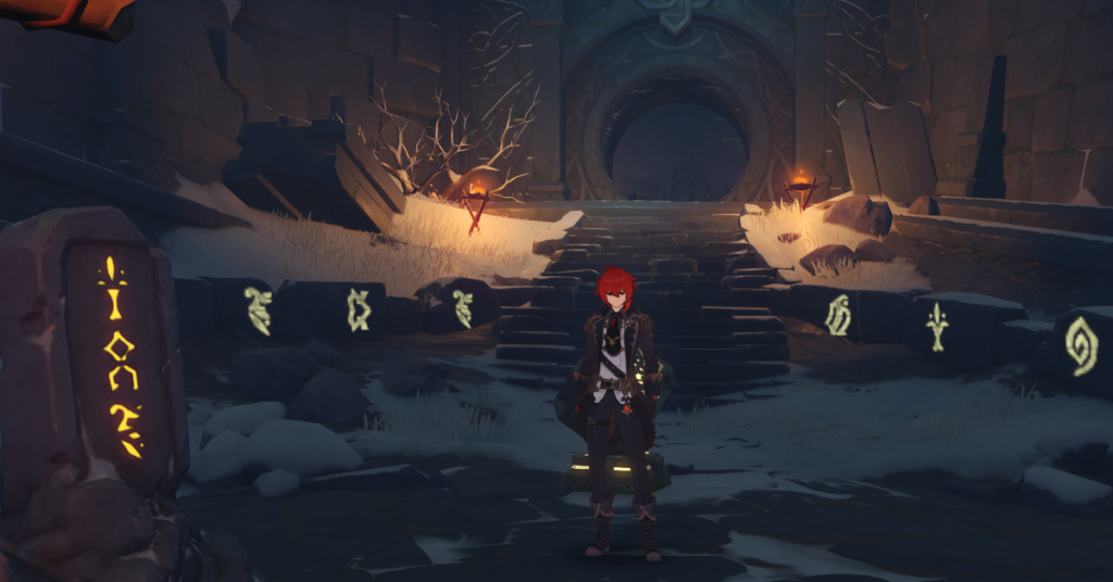 Una volta attivate tutte le tavolette, potrai attivare il meccanismo e aprire l’ultima porta, ricompensandoti con uno scrigno di chicche. Dovrai anche usare un personaggio Pyro per accendere le quattro torce nell’angolo della stanza. Una volta fatto, verrà riprodotto un filmato e lo Starsilver Snow-Tomed, un claymore a quattro stelle, si genererà nel mezzo per la tua cattura.
