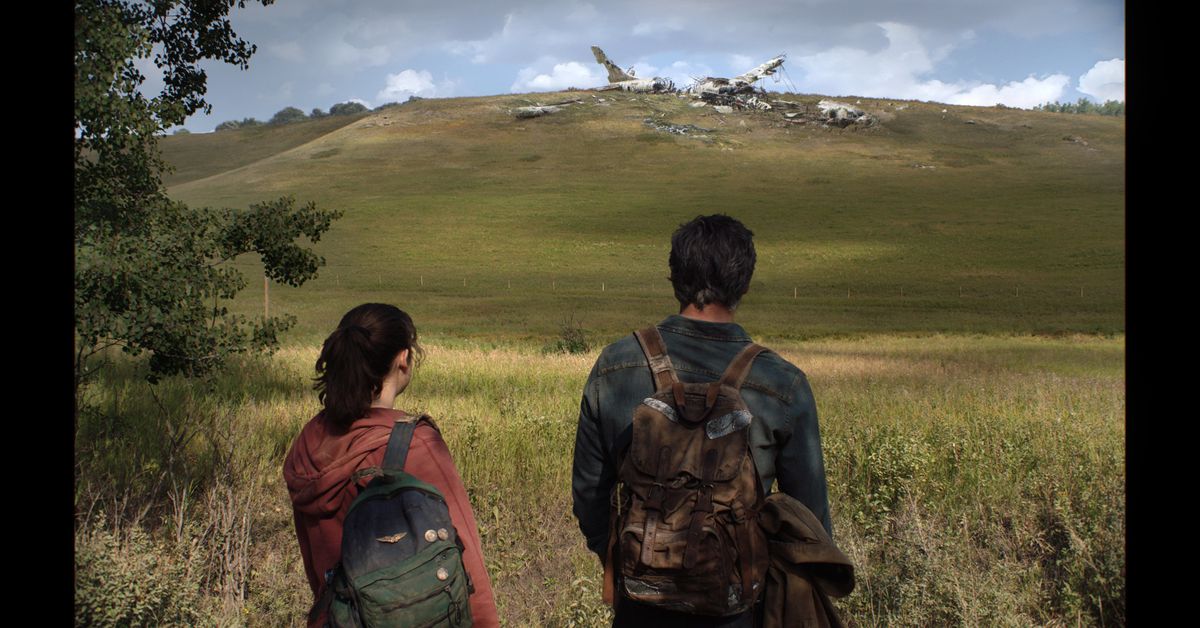 HBO ha condiviso la sua prima produzione ancora dello show televisivo The Last of Us, con Pedro Pascal nei panni di Joel e Bella Ramsey nei panni di Ellie, domenica. L’immagine mostra il duo dal retro, ognuno con indosso i propri zaini indossati e che fissa un aereo commerciale distrutto. Joel indossa una maglietta di jeans blu e tiene in mano una Carhart, mentre Ellie indossa una felpa con cappuccio rosa scuro, simile alla maglietta che indossa nel primo gioco.