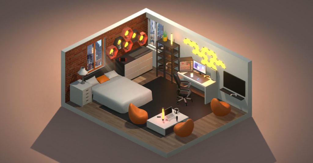Il giocatore può modificare le pareti e i pavimenti della stanza, nonché la sua disposizione, in modo da poter lavorare con uno spazio più ampio o una stanza più piccola. Anche l’illuminazione gioca un ruolo importante; le selezioni di mobili includono sia lampade modeste che fantastiche luci a LED, e poi c’è un interruttore che cambia l’illuminazione ambientale e l’ambiente esterno.