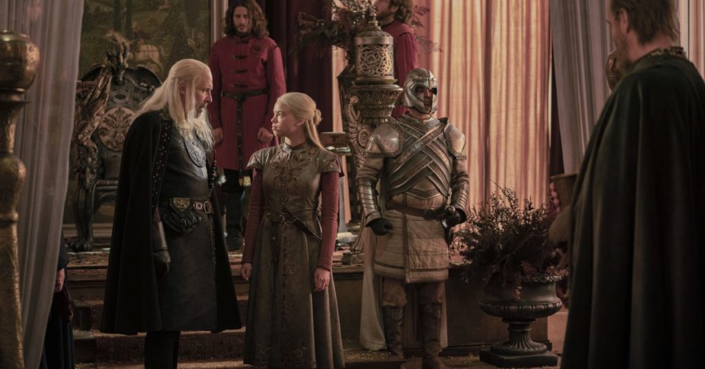 Non c’è molto accordo su chi dovrebbe essere il prossimo sovrano di Westeros nell’episodio 3 di House of the Dragon. A una festa di caccia organizzata in onore del secondo compleanno del principe Aegon, molti spingono affinché Aegon sia il prossimo in linea (essendo lui il figlio primogenito di re Viserys), mentre altri insistono sul fatto che il trono sia ancora di Rhaenyra (essendo il vero primogenito ed erede nominato) . È abbastanza per far impazzire il povero Viserys, papà e re. Vuole un chiaro segno della retta via e ottiene la promessa di uno con la menzione di un cervo bianco che corre intorno al Kingswood.