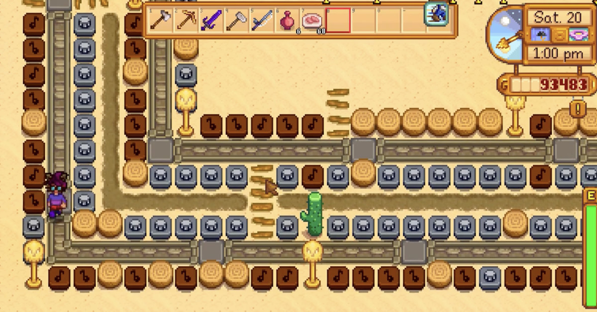 Organizzare la musica è impegnativo, anche con gli strumenti migliori, e farlo in Stardew Valley richiede una combinazione di magia di Excel e clic furiosi. Implica anche alcuni ostacoli molto specifici: c’è la limitazione dei suoni che possono essere riprodotti in un dato momento; la velocità di camminata di uno sprite, che aumenta il tempo; e la sfida di trovare un punto abbastanza grande sulla mappa di Stardew Valley per tracciare tutto. Catturare l’essenza di una canzone è difficile, ma è comunque possibile! — anche con questo piccolo toolkit.