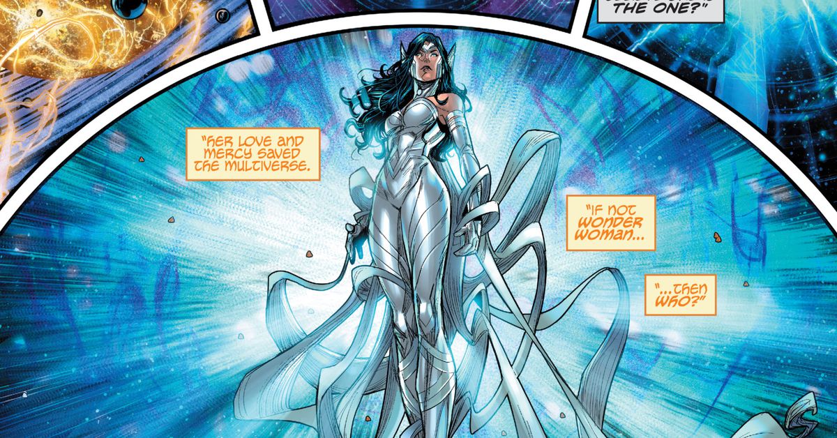 Ma sappiamo anche esattamente dove si trova Wonder Woman, perché a differenza di tutti i supereroi che la stanno cercando, possiamo leggere i comunicati stampa della DC Comics. Dopo il suo eroismo nel salvare l’universo dalla fine in Dark Nights: Death Metal, a Diana è stata offerta la possibilità di ascendere alla God Sphere, lo spazio al di fuori dello spaziotempo dove vivono tutti gli dei dell’Universo DC, diventare lei stessa un dio e aiutare. osserva il nuovo multiverso infinito.