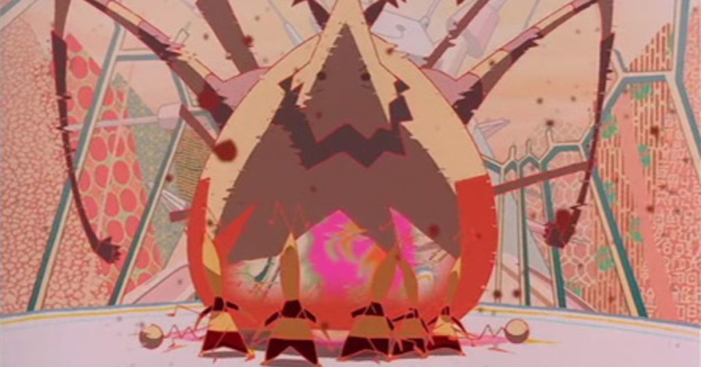 È possibile vedere parallelismi distintivi tra la premessa e lo stile di animazione di Noiseman Sound Insect con il successivo lavoro di Morimoto sul cortometraggio anime “Beyond” per l’antologia anime del 2003 The Animatrix, incentrato su una giovane donna che ha scoperto una “casa fantasma” difettosa ” occupato da un gruppo di bambini indisciplinati, o anche il suo video musicale per il singolo del DJ giapponese Ken Ishii del 1996 “Extra”, che (a) è molto bello, (b) ha effetti di luce stroboscopica — quindi sii cauto se sei suscettibile all’epilessia fotosensibile — e (c) non è assolutamente sicuro per il lavoro. Non posso sottolineare abbastanza l’ultimo punto: sei stato avvertito!