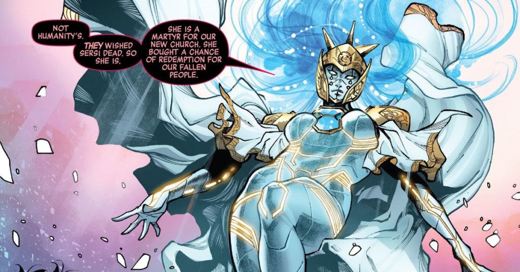 Il segreto del successo dell’arco è che non morde mai più di quanto possa masticare, il che suona farsesco da dire su un libro in cui i Vendicatori, gli X-Men e gli Eterni creano accidentalmente un dio che cerca di distruggere tutta l’umanità. Ma sotto la guida dello scrittore Kieron Gillen e dei suoi collaboratori – sia per il titolo principale del Giorno del Giudizio che per la maggior parte dei suoi one-shot tie-in – la storia ha obbedito alla prima regola di scrivere fumetti di eventi: