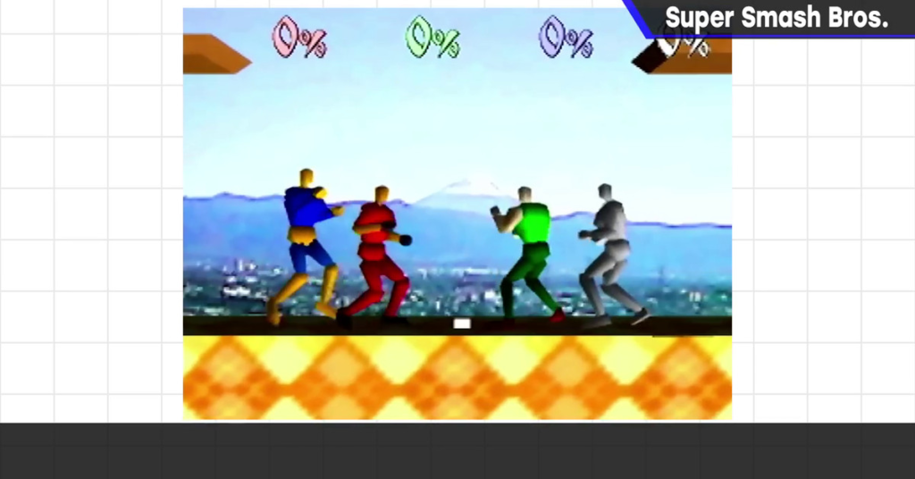 Il prototipo, soprannominato “Dragon King: The Fighting Game”, include quasi tutti gli elementi fondamentali che sarebbero stati poi visti in Super Smash Bros. Il filmato mostra quattro combattenti in tute multicolori che si generano su una serie di piattaforme galleggianti e combattono con un immagine statica di una montagna sullo sfondo, utilizzando mosse di base come attacchi smash, salti a mezz’aria, scudi, trattini e attacchi aerei in cinque direzioni.