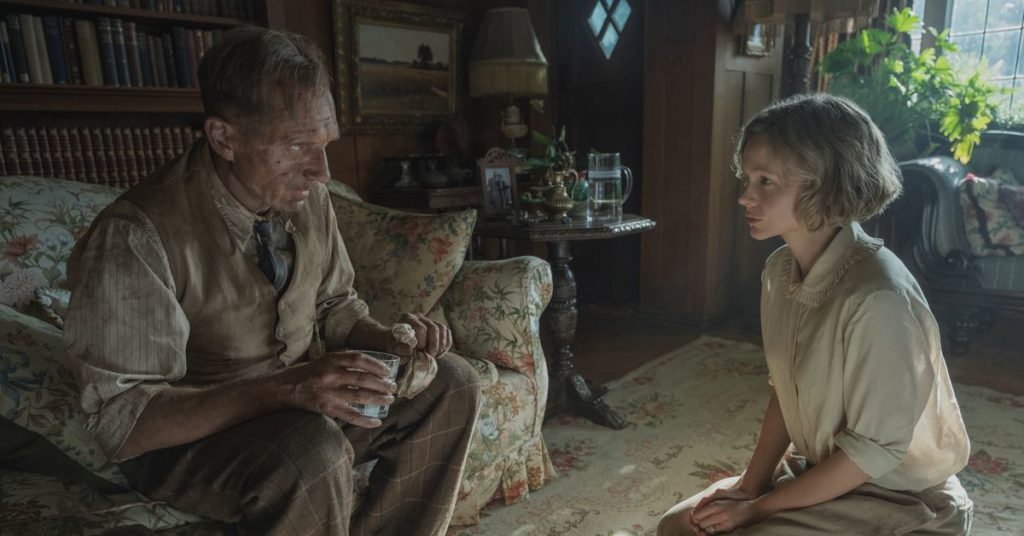 La decisione di scegliere Mulligan potrebbe derivare dalla realtà della signora Pretty che ha dato alla luce suo figlio Robert (Archie Barnes) quando aveva 47 anni.Mentre Stone si sforza di raffigurare la signora Pretty come una donna singolarmente determinata, abbastanza ostinata, nelle scene successive, per combattere il British Museum per il controllo del manufatto anglosassone, nasconde la sua identità di madre anziana nella speranza di prenderla in giro come potenziale interesse amoroso per Brown (Ralph Fiennes) molto più anziano. La decisione mette The Dig in con altri pezzi d’epoca convenzionali, come The Last Samurai e Where Angels Fear to Tread, dove la moglie vedova si innamora di un uomo che arriva per caso. Sebbene Stone per fortuna non rimanga in quel registro a lungo, il suggerimento che questa sarà una storia d’amore standard rende l’inizio del film più noioso di quanto dovrebbe essere. Una volta che Stone distoglie la sua attenzione sia dalla signora Pretty che da Brown verso un’altra vorticosa storia d’amore, la narrazione acquista slancio.