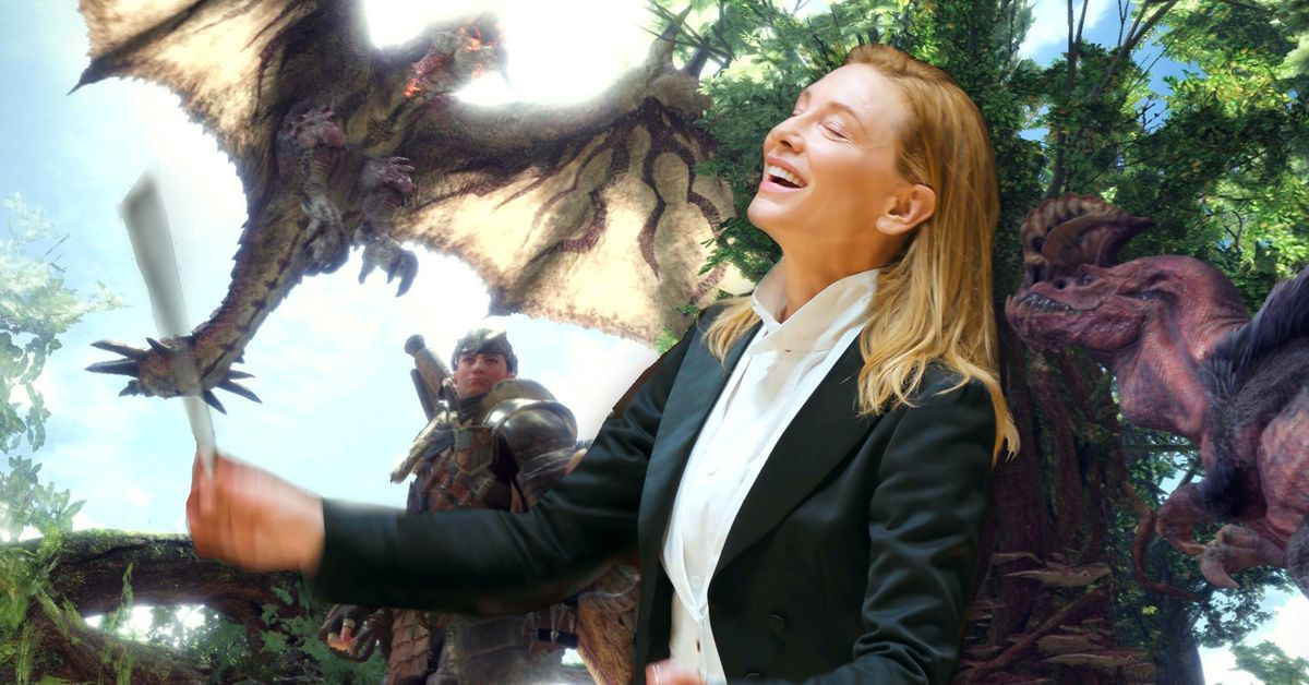 Quindi, quando inizia la riproduzione del filmato di apertura di Monster Hunter: World e gli spettatori vedono questo pubblico silenzioso e serio nei loro costumi elaborati, è difficile non ridere dell’assurdità di tutto ciò, soprattutto data la posta in gioco alta e la storia cupa che lo precede. Il primo istinto del pubblico è probabilmente quello di vedere l’ultimo lavoro di Lydia come un umiliante downgrade. Ecco il luogo: Lydia Tár è così tossica che è stata esiliata in un luogo in cui il suo nome non significa nulla. E sta dirigendo la musica per Monster Hunter, una serie in cui i giocatori uccidono draghi e dinosauri, li raccolgono per parti e carne e danno il ricavato a un gatto assistente antropomorfo con cui fabbricare armi.