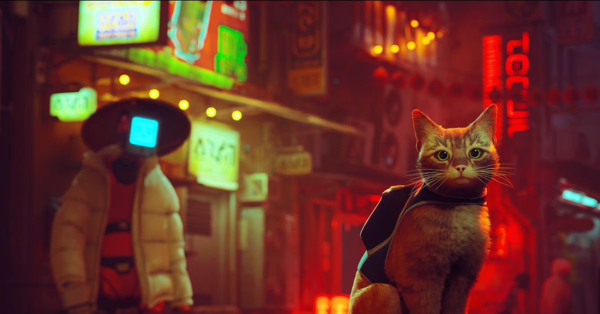 Ma c’è una trama generale in Stray e un “antico mistero” da scoprire, secondo il suo sviluppatore. La missione del gatto a Stray è quella di fuggire dalla cibercittà murata in cui abita e chiederà l’aiuto di un piccolo drone chiamato B-12 per raggiungere tale obiettivo. L’amico robotico volante, guadagnato ad un certo punto del gioco, è indossato come un’imbracatura e può interagire con la tecnologia. Serve come torcia e traduttore, comunica con i robot umanoidi in città e assiste nelle missioni di recupero e nelle commissioni. Attraverso queste missioni, il gatto sbloccherà i ricordi per saperne di più sul mondo e sui suoi abitanti.