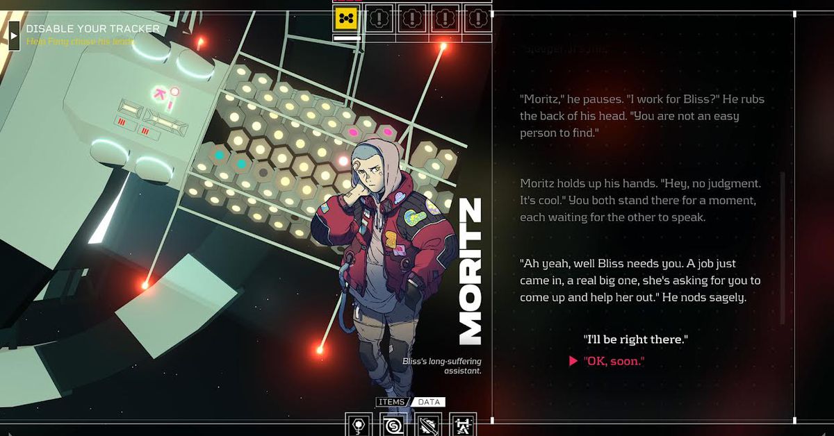 Con la musica composta da Amos Roddy (Kingdom: Two Crowns, Strafe, In Other Waters) e le illustrazioni dei personaggi dell’artista di fumetti francese Guillaume Singelin, Citizen Sleeper sembra essere un audace salto dall’affascinante design minimalista di In Other Waters del 2020.