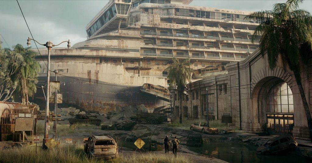 A seguito di una concept art rivelata lo scorso giugno, il co-presidente di Naughty Dog Neil Druckmann ha rivelato un’altra opera d’arte del gioco multiplayer basato sul franchise post-apocalittico. Quell’opera d’arte mostra una coppia di sopravvissuti che si avvicinano a un’enorme nave da crociera a terra – senza dubbio una risorsa di materiali recuperati e fonte di potenziali pericoli – in una città costiera in rovina.