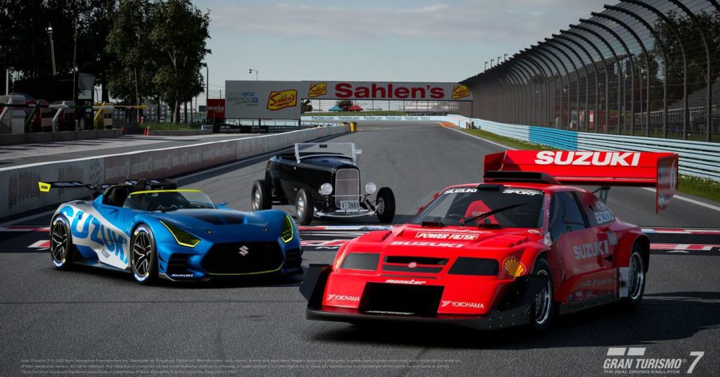 La prima vettura è la Suzuki V6 Escudo Pikes Peak Special ’98, che è “una macchina mostruosa sviluppata appositamente per competere nelle condizioni più difficili per qualsiasi macchina da corsa nel conquistare l’insidiosa salita in salita”. La seconda macchina è la versione Suzuki Vision Gran Turismo (Gr.3), che è un’auto da corsa più tipica che ti aspetteresti, beh, Gran Turismo 7.
