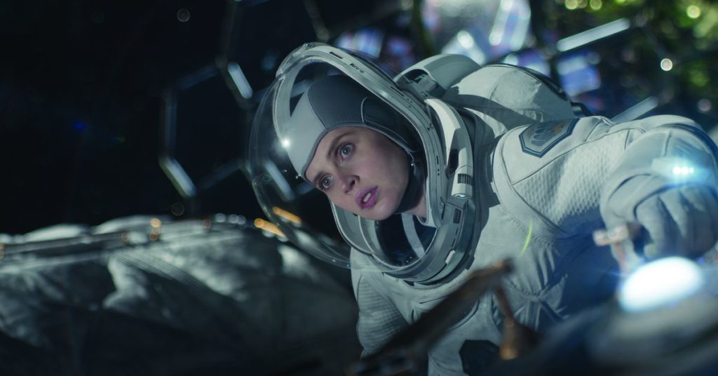 Smith intreccia il triste viaggio terrestre di Iris e Agostino con il ritorno dell’Etere da una missione di esplorazione. Due anni fa hanno lasciato casa per scoprire se K-23 potesse essere abitabile. Ora stanno tornando in una terra inospitale. L’arco della troupe sarebbe sufficiente per il suo film: il comandante Tom Adewole (David Oyelowo) e il secondo in comando Sully (Felicity Jones) aspettano una figlia; Mitchell (Kyle Chandler) e Maya (Tiffany Boone) passano il tempo immergendosi nei loro ricordi ologramma delle rispettive famiglie. E il premuroso Sanchez (Demián Bichir), che ha poco da masticare, solleva il morale dei suoi compagni. Le dinamiche familiari dell’equipaggio offrono battute pesanti di dialoghi che sono tonalmente stridenti dall’umore disperato e senza parole del viaggio di Augustine. E nel tratto finale, la trama dell’equipaggio domina l’azione.