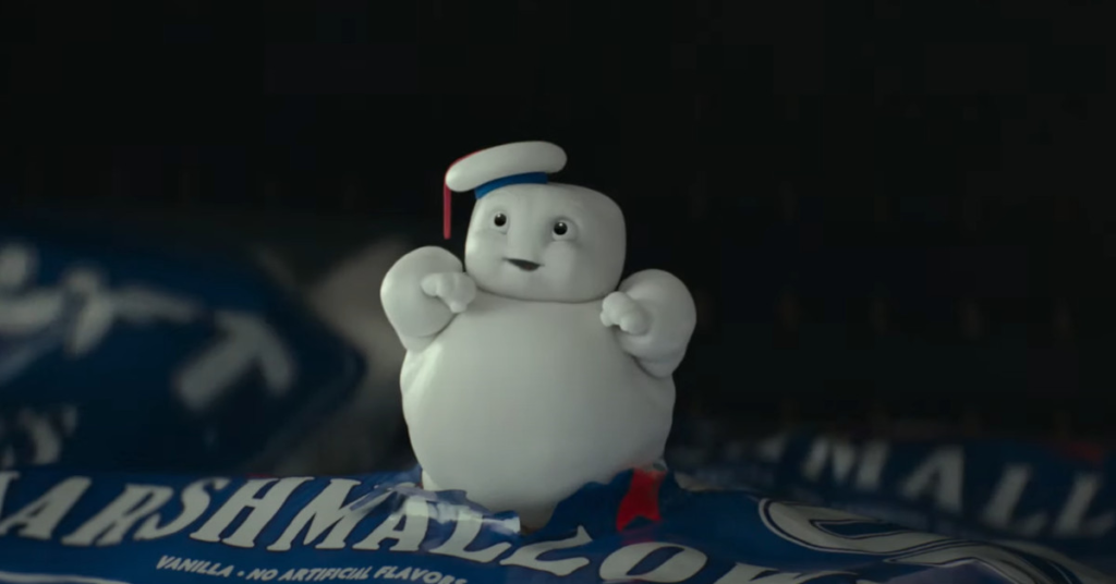 Annie Potts, che ha interpretato l’assistente amministrativa dei Ghostbusters Janine nel primo film, si presenta qui, insieme a un cameo di fine trailer di Dan Aykroyd, il cui personaggio di Ray Stantz sembra gestire un negozio di libri sull’occulto oggi. Ci sono anche video di YouTube degli spot pubblicitari originali di Ghostbusters, Slimer, un Hellhound che esce da un Wal-Mart, un esercito di minuscoli marshmallow Stay-Puft e un milione di altri piccoli riferimenti ai film originali. Ehi, ma almeno Muncher, il nuovo fantasma blu, fa ritorno dai trailer precedenti.