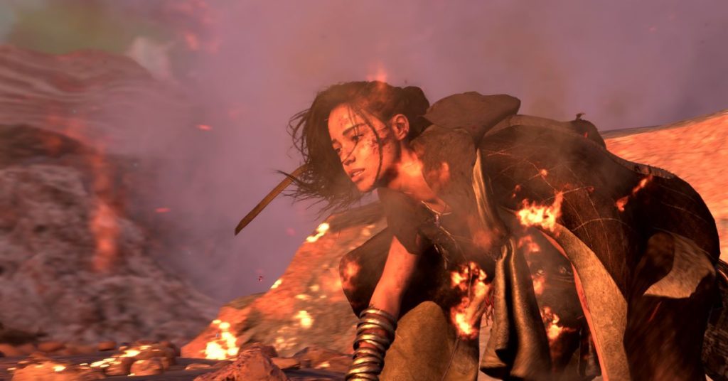 Corre e si tuffa sotto i muri rotti in un castello abbandonato con un drago gigante all’inseguimento. Ha un compagno fastidiosamente loquace di nome Cuff, che è letteralmente un braccialetto d’oro parlante. Quindi, dopo aver evitato per un pelo il pericolo, otteniamo una spettacolare vista a volo d’uccello del paesaggio, dominata da un massiccio punto di riferimento in pietra che si inarca nel cielo.