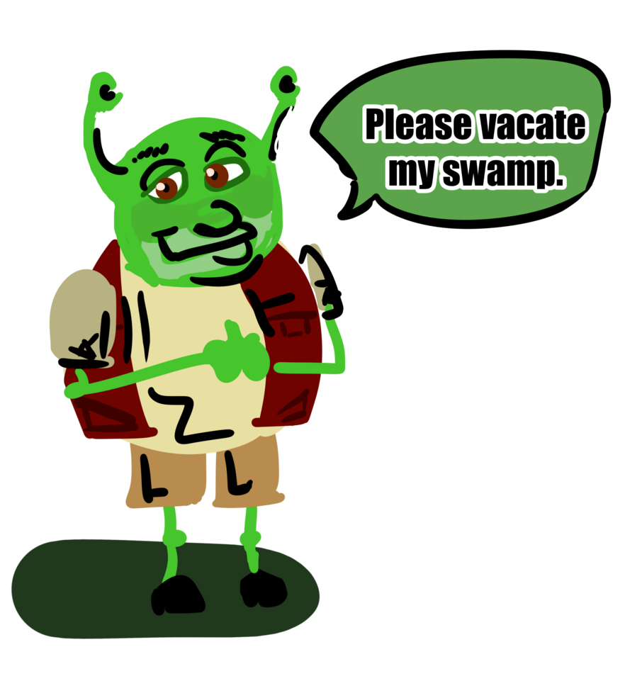 “Oggi mi è stato detto di disegnare Shrek. Shrek è un essere poliedrico, ma per me Shrek: suda e indossa pantaloni vagamente scozzesi per abbinare il suo accento vagamente scozzese. Il mio Shrek ha le caratteristiche cardinali di Shrek come occhi, denti, piedi, braccia e una strana antenna. Ma per rendere il pezzo più realistico, ho aggiunto quello che sapevo e l’ho mischiato. Il mio Shrek è molto sudato, dato che vive in una palude. Puoi vedere il sudore nelle macchie marroni sul suo corpo e sotto le sue braccia. Il mio Shrek è anche orgoglioso della sua nazione d’origine, la Scozia, nonostante viva in una palude fuori Duloc, che è una città in ??? Per mostrare il suo patriottismo, il mio Shrek indossa pantaloni a scacchi che presentano rosso e verde (una tonalità più scura della sua pelle), come è consuetudine nelle cornamuse e in altre cose scozzesi “.