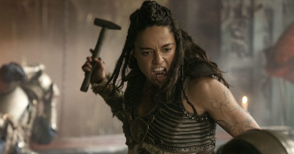 Qui, Honor Among Thieves rivela due cose: in primo luogo, Marlamin è interpretato da Bradley Cooper. In secondo luogo, Marlamin è alto solo circa 3 piedi. La comicità della scena risiede nel modo in cui Cooper e Rodriguez mantengono le facce meticolosamente serie mentre discutono dello scioglimento della loro relazione e del fatto che Marlamin è andata avanti. Queste sono, in perfetto stile romantico-drammatico, due persone che hanno sacrificato tutto per stare insieme, poi si sono rese conto di non essere affatto compatibili. È solo che uno di loro è un barbaro vestito di pelliccia e pelle, e l’altro è un ragazzo le cui gambette penzolano dal sedile della sua poltrona a misura d’uomo.