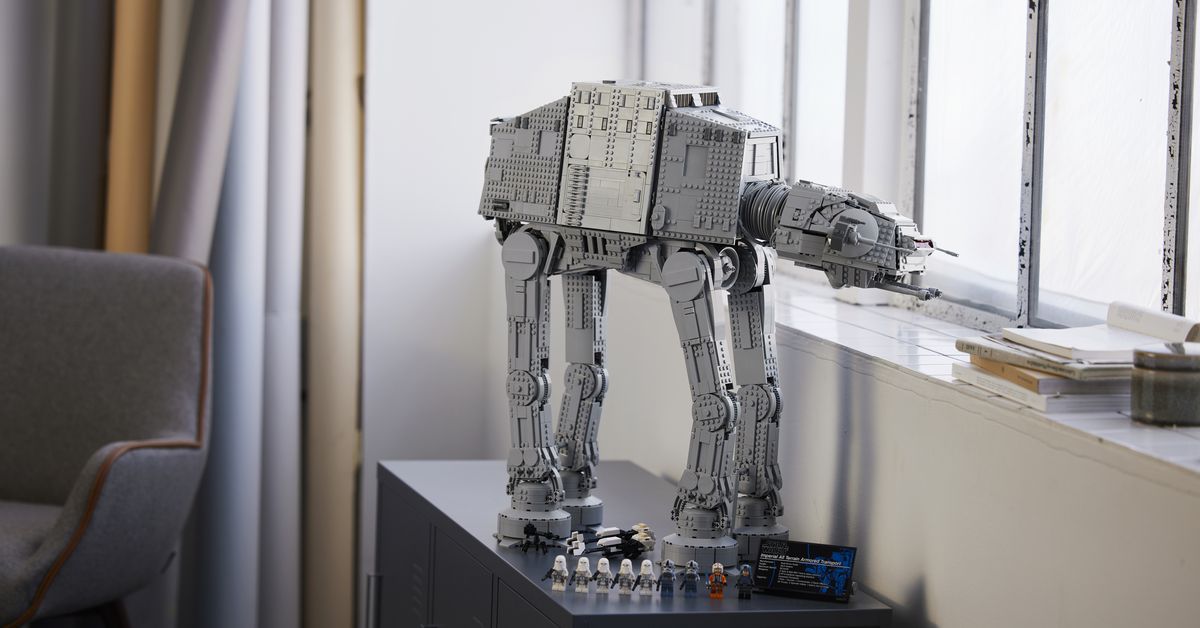 Il set AT-AT è di ben 6.785 pezzi e si trova a 24,5 pollici con una lunghezza di 27 pollici, all’incirca le dimensioni di un cane medio, come un collie. Si apre per rivelare l’interno del veicolo ed è completo di testa mobile, pistole rotanti e minifigure. In effetti, include anche un piccolissimo Luke Skywalker, completo di cavo, quindi la scena in cui oscilla sotto l’AT-AT può diventare una realtà Lego.