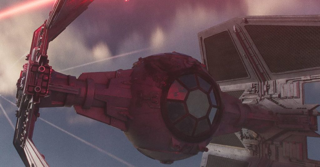 L’azione include un duello al gatto con il topo tra un pilota mascherato dell’X-Wing della New Republic e un leader di squadriglia TIE altamente qualificato che pilota un Interceptor. È chiaramente progettato per dare ai bravi ragazzi un brutto nome, evidenziando un duello sanguinario tra un X-Wing fresco e un TIE Interceptor pesantemente danneggiato.