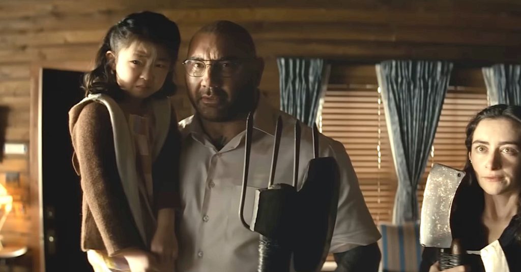 Con l’azione in gran parte confinata in un luogo e la maggior parte della storia dedicata a un piccolo cast alle prese con una situazione tesa e incredibile, Knock at the Cabin sembra una commedia. Il suo successo si basa esattamente su ciò che gli artisti apportano al materiale. Nessuno sopporta quel peso più di Bautista, che deve vendere la convinzione delle convinzioni di Leonard sia alle sue vittime che al pubblico, dando credito a tutte le cose che Leonard diventa nell’immaginario collettivo: una minaccia, un pazzo, un bigotto, un sadico assassino o, cosa più spaventosa di tutte, un uomo sincero che riceve visioni da una fonte soprannaturale.
