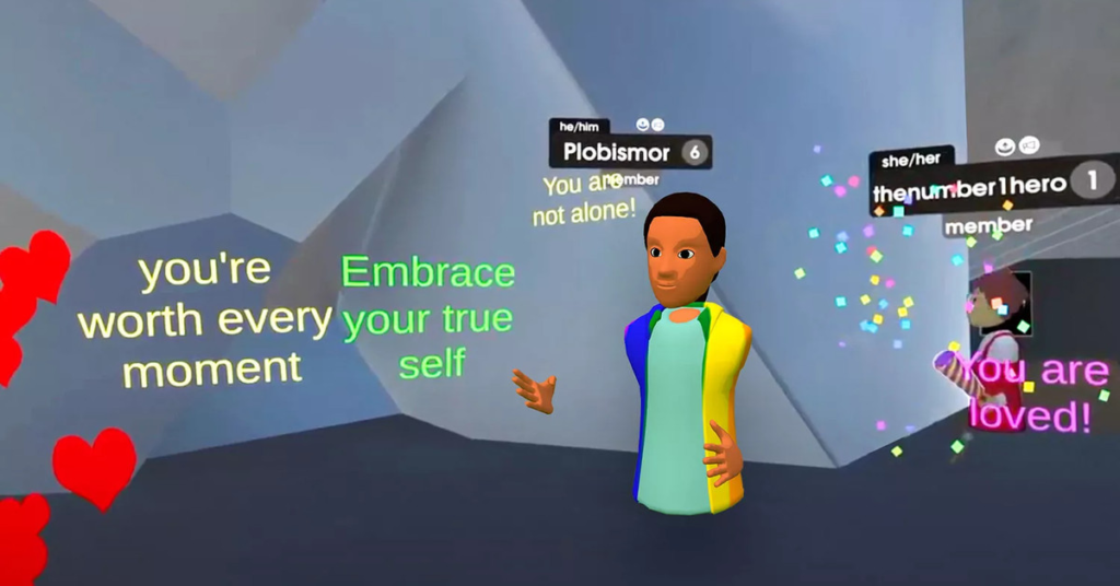 È un po’ strano vedere i personaggi del metaverso, rappresentati da una testa, un torso e un paio di mani che ondeggiano, presentarsi in uno spazio virtuale per lavorare sulla loro salute mentale. Gli utenti hanno accesso a un soggiorno privato o a un centro comunitario basato su un accogliente focolare.